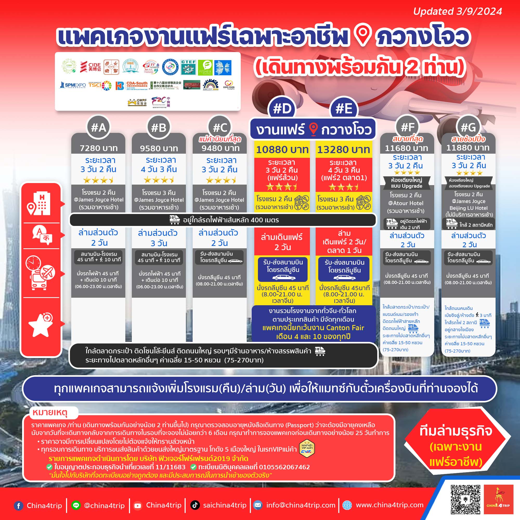 แพคเกจ D,E เริ่ม 3 วัน 2 คืน เดินงานกับล่ามส่วนตัว 2 วัน ณ เมืองกวางโจว