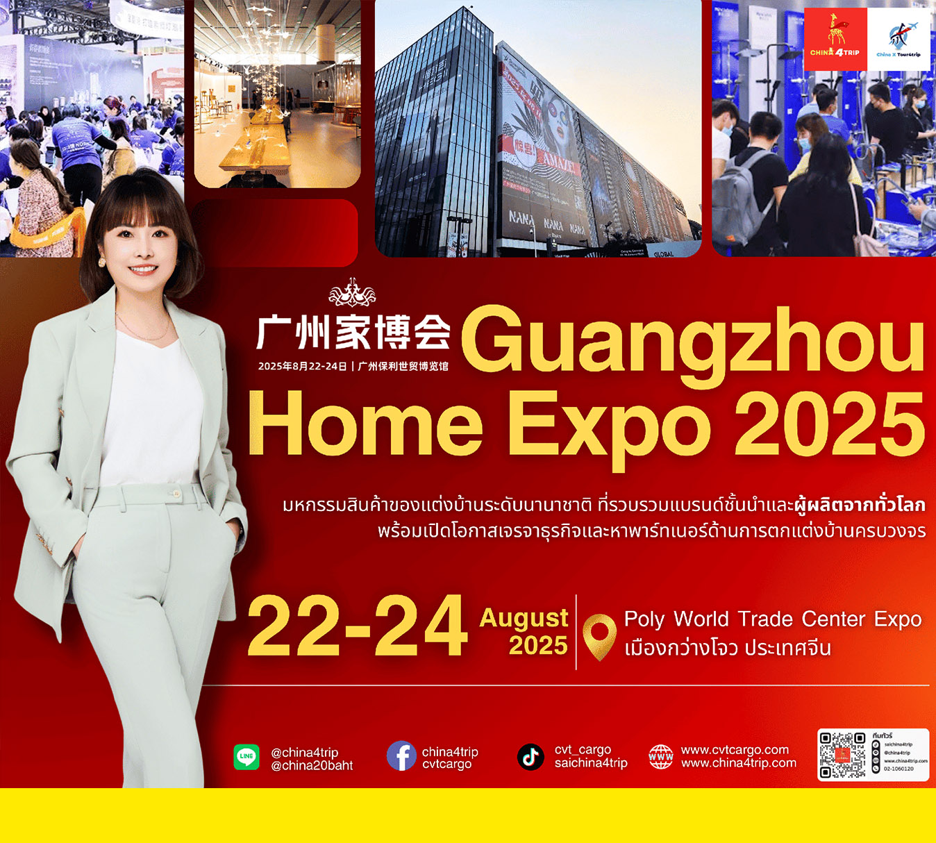 ตลาดขายส่ง-สนามบินกวางโจว (หรือ ณ เมืองที่จัดงานแฟร์เฟอร์นิเจอร์หรือเมืองใกล้เคียง) – กรุงเทพ