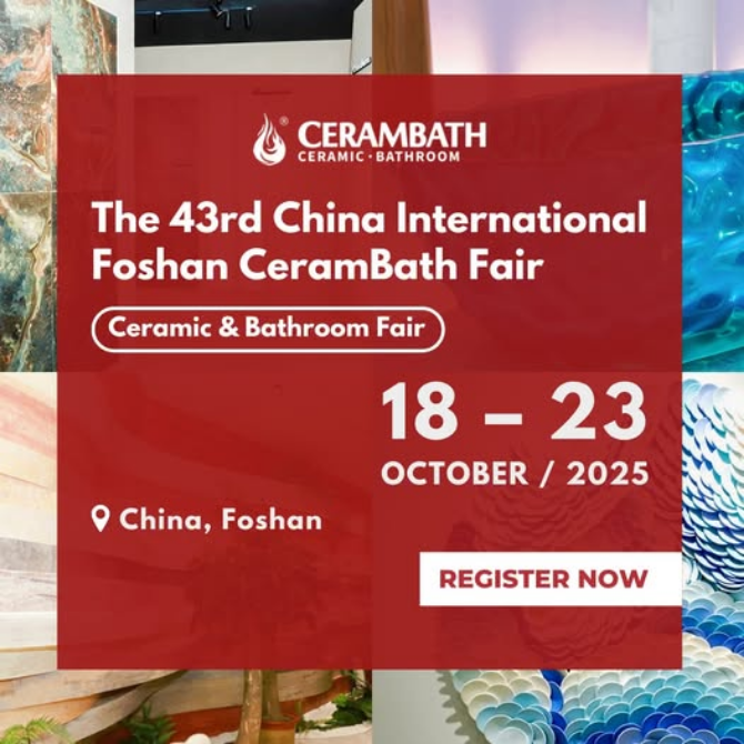 18 - 23 ตุลาคม 2025 | มหกรรมแสดงสินค้าเซรามิกและสุขภัณฑ์นานาชาติจีน ครั้งที่ 43 | The 43rd Foshan CeramBath 2025 |