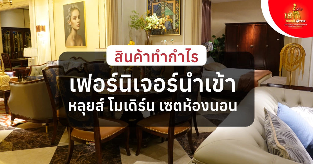 ในปัจจุบันสินค้าเฟอร์นิเจอร์ถูกนำเข้ามาจากจีน เป็นจำนวนมาก ทั้งขายได้ราคาดี กำไรเยอะเหมาะกับพ่อค้าแม่ค้าที่อยากขายสินค้ายอดฮิตและได้กำไรสูง การเริ่มต้นขายสินค้าเฟอร์นิเจอร์นำเข้า จะต้องรุ้จักแหล่งที่ผลิตสินค้า แหล่งที่พ่อค้าแม่ค้านิยมนำเข้ามา ส่วนมากจะเป็นสินค้าจากจีน เพราะจีนมีทั้งโรงงาน ตลาด และแหล่งขายส่ง ขายปลีก เรียกได้ว่าครบจบที่เดียว